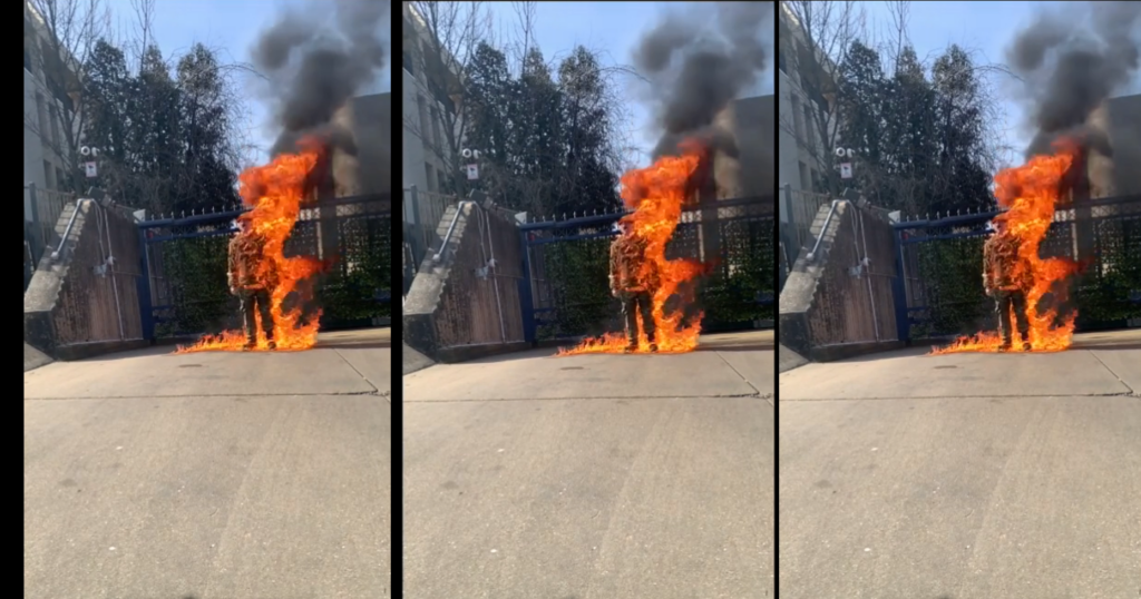 Watch as a United States Air Force member sets himself on fire in a suicide attempt
